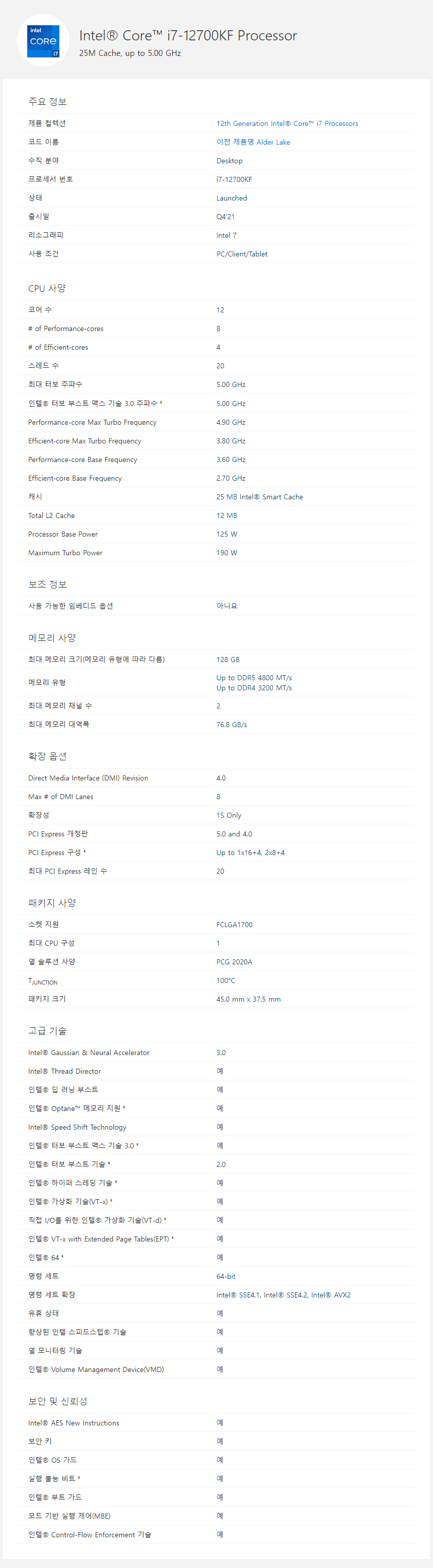 ÀÎÅÚ ÄÚ¾îi7-12¼¼´ë 12700KF (¿¤´õ·¹ÀÌÅ©) ¹úÅ© CY
